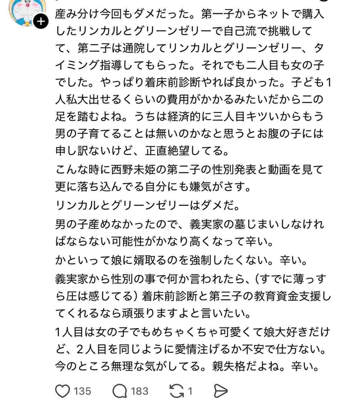 なぜ我が国では女児が生まれると終わったムードになってしまうのか😭