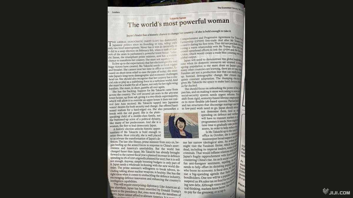 高市首相「世界で最も強力な女性」 英誌エコノミストが特集:時事ドットコム