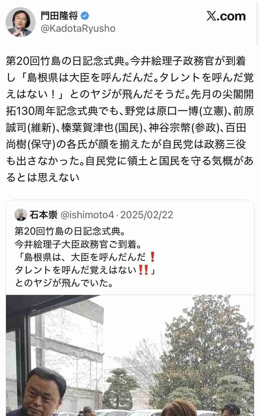 門田隆将「竹島の日式典に首相も政務官も行かない?事実なら高市政権は抵抗勢力に押し返されたということだ」