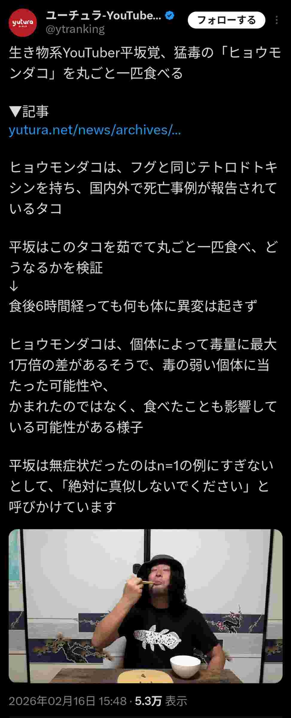 こういう危険なことするyoutuberは収益停止にしろ - 66 名前:ここからは表現の自由でイカせていただきます 投稿日時:2026/02/16(月) 17:15:04.40 ID:iZIW3WJo0