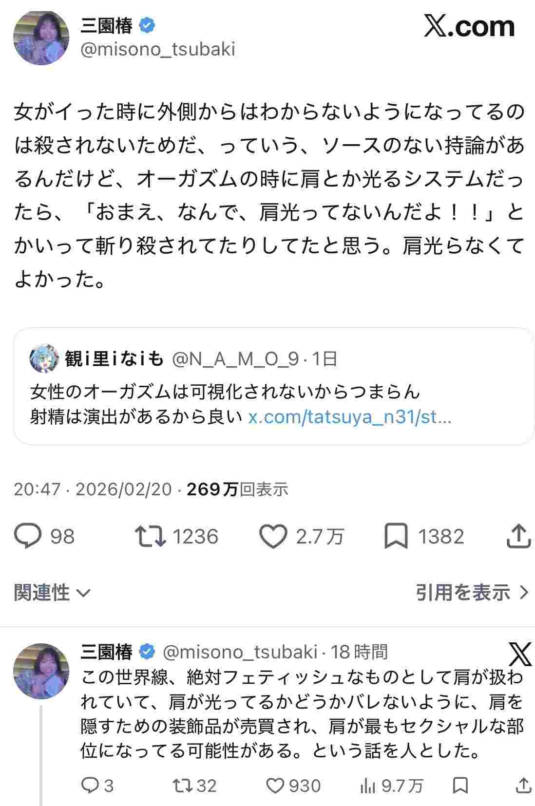 - 32 名前:ここからは表現の自由でイカせていただきます 投稿日時:2026/02/21(土) 15:41:19.00 ID:T/3uJQKz0