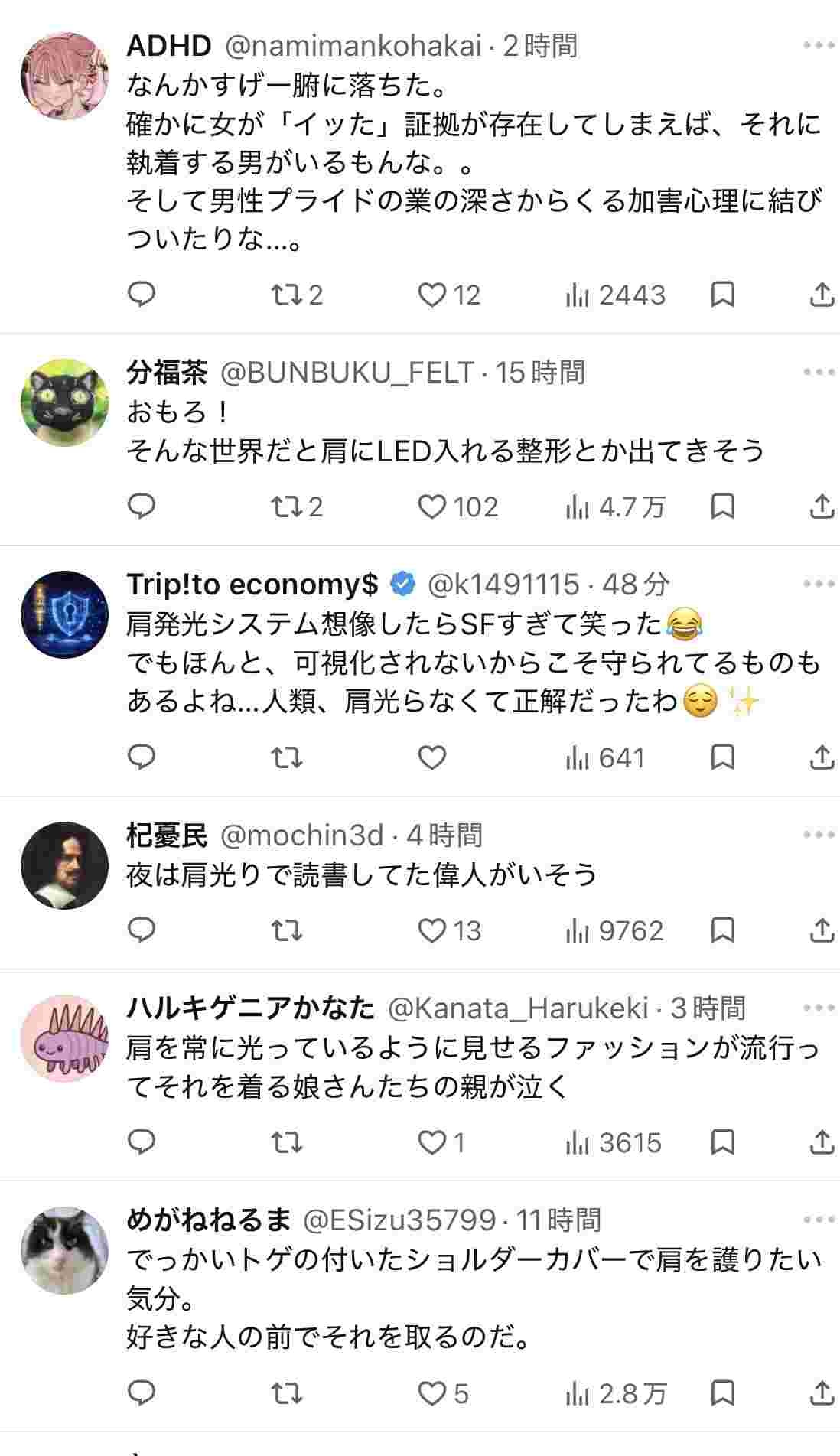 - それまるで昔は肩が光る女が存在したみたいな言い方じゃないか