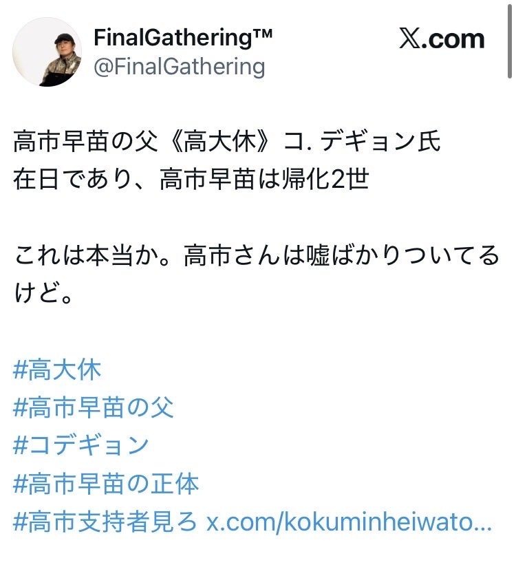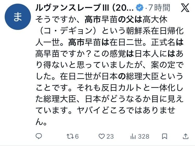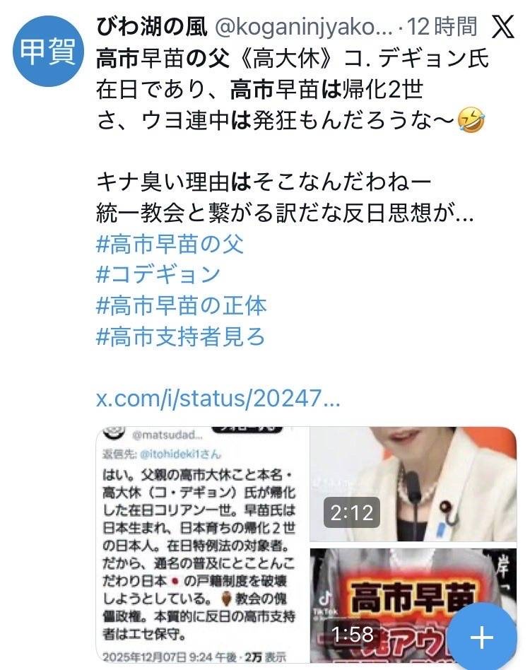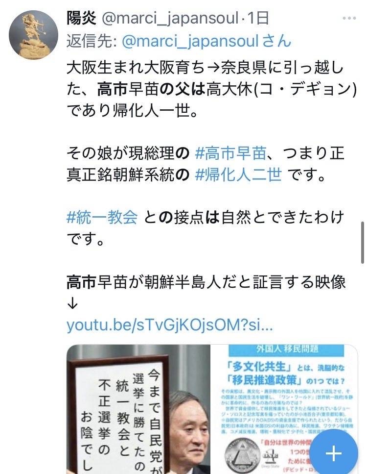 ネトウヨ「高市は在日2世」ネトウヨのデマ攻撃が始まるwww