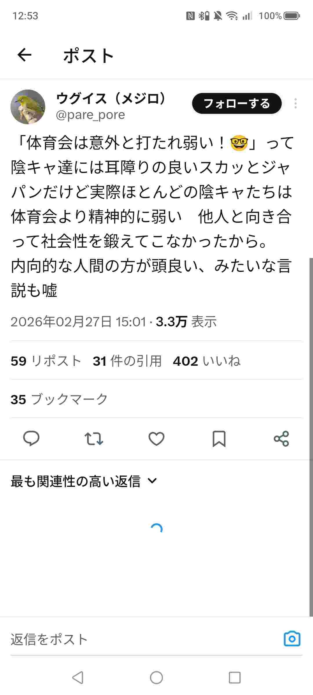 まあ俺も陽キャじゃないこと認めるから「お前だって!」という反論は効かない - 26 名前:ここからは表現の自由でイカせていただきます 投稿日時:2026/02/28(土) 13:19:36.36 ID:uA5YD0Ha0
