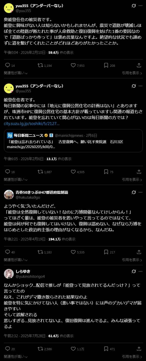 【馳落選】ネトウヨ「能登が復興してないというのはデマ!地元民の意思でそうしてるだけ!馳は感謝されてる!」 これマジで何だったの?