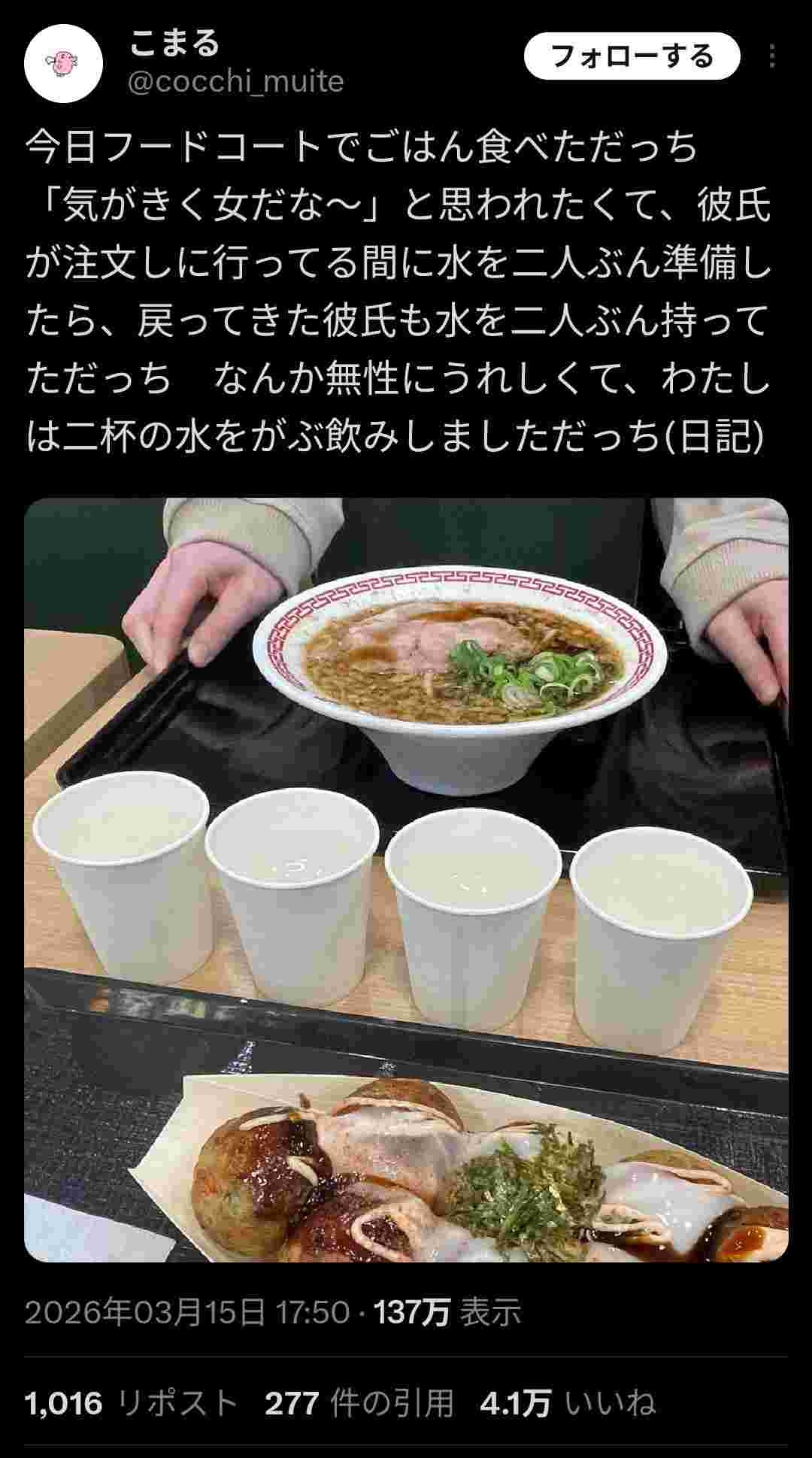 - 彼氏とのお出かけを楽しむであってフードコートを楽しんでるわけじゃない