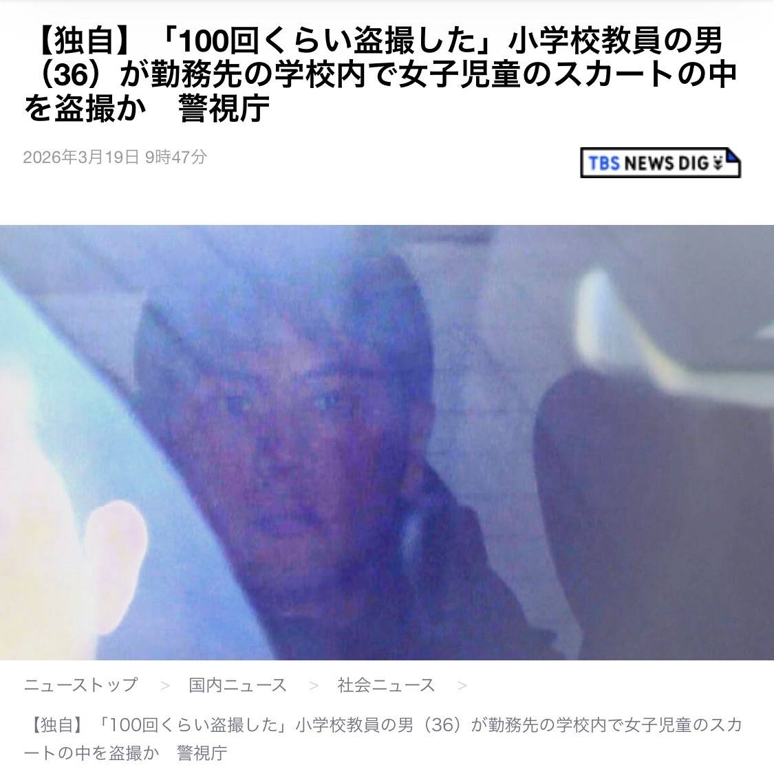【独自】「100回くらい盗撮した」小学校教員の男(36)が勤務先の学校内で女子児童のスカートの中を盗撮か 警視庁 - ライブドアニュース