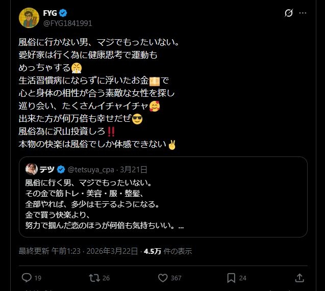 毎月行ってるわ - 6 名前:ここからは表現の自由でイカせていただきます 投稿日時:2026/03/22(日) 17:12:03.79 ID:GN6Prlr90