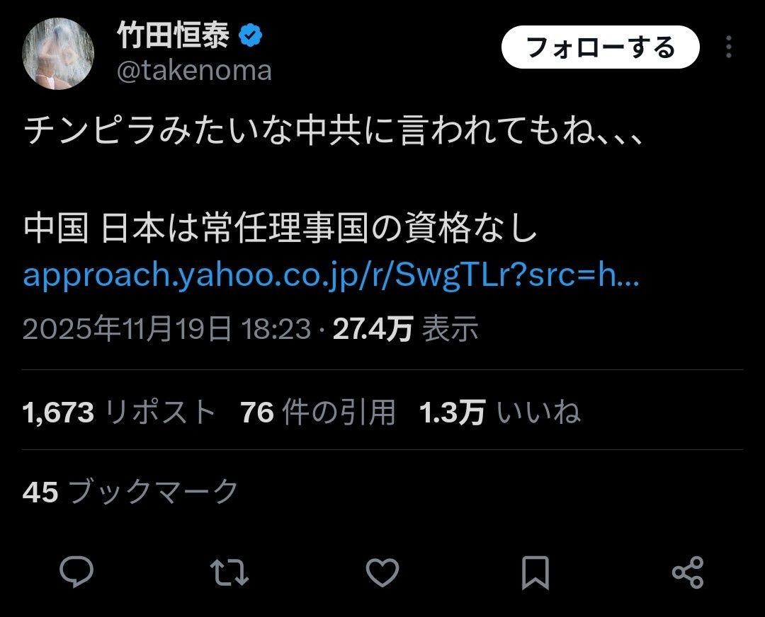 - 45 名前:ここからは表現の自由でイカせていただきます 投稿日時:2026/03/25(水) 05:58:25.76 ID:DI6gnBwN0