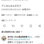 - 74 名前:ここからは表現の自由でイカせていただきます 投稿日時:2026/03/25(水) 15:59:21.31 ID:Qu5kwqjy0
