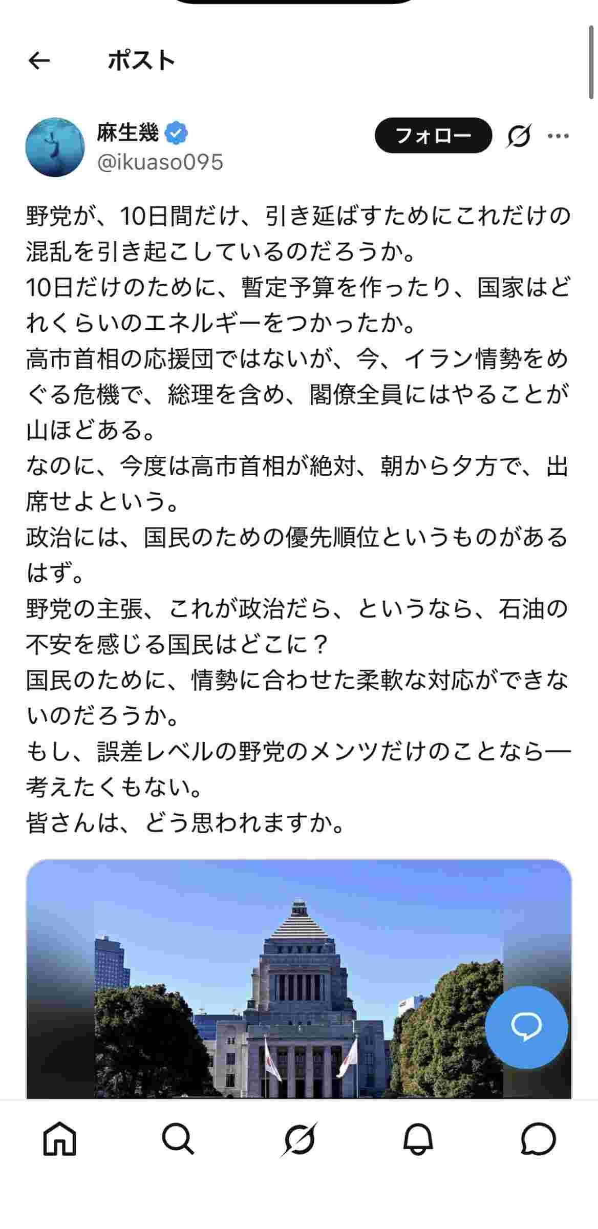 高市騎士「潰したやるぞ野党」