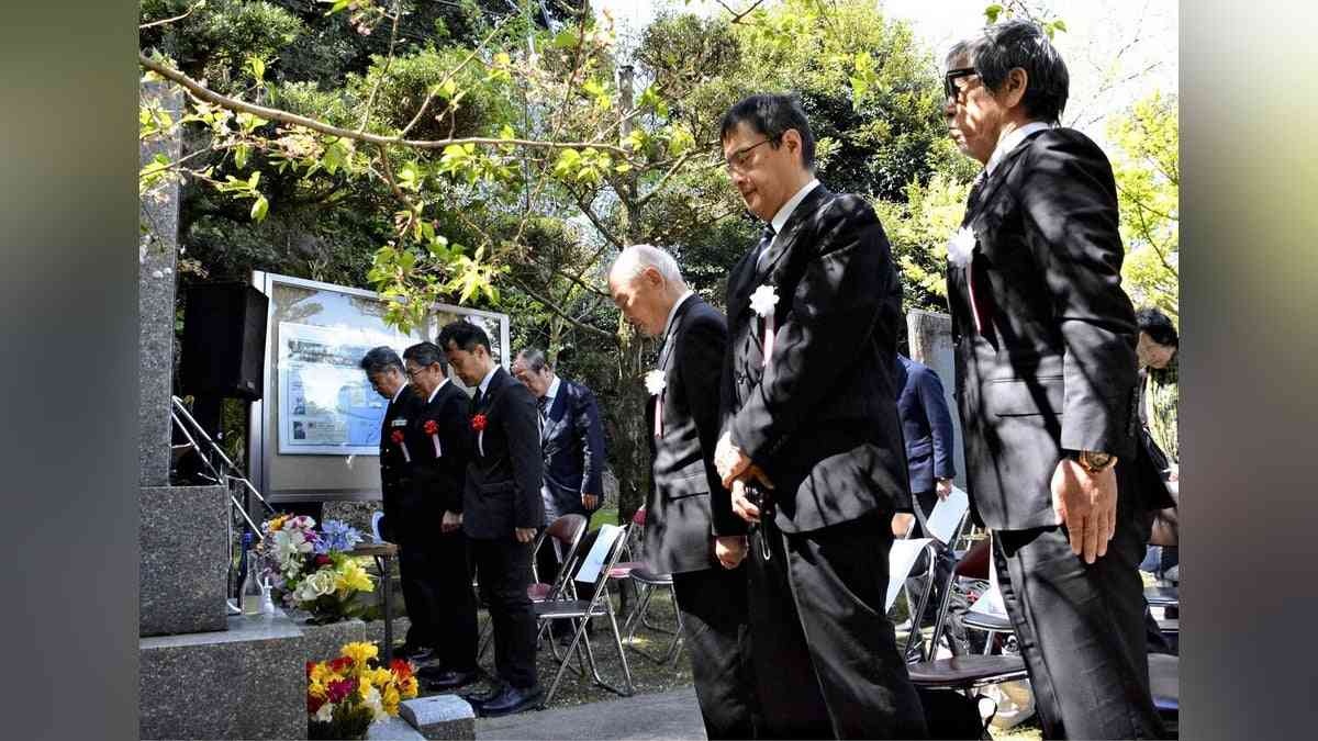 太平洋戦争末期の1945年4月、沖縄海上特攻に出撃した戦艦大和などが撃沈されて7日で81年となり、大和とともに東シナ海に没した伊藤整一・第2艦隊司令長官の福岡県大牟田市岬にある墓園で慰霊式典が開かれた。
