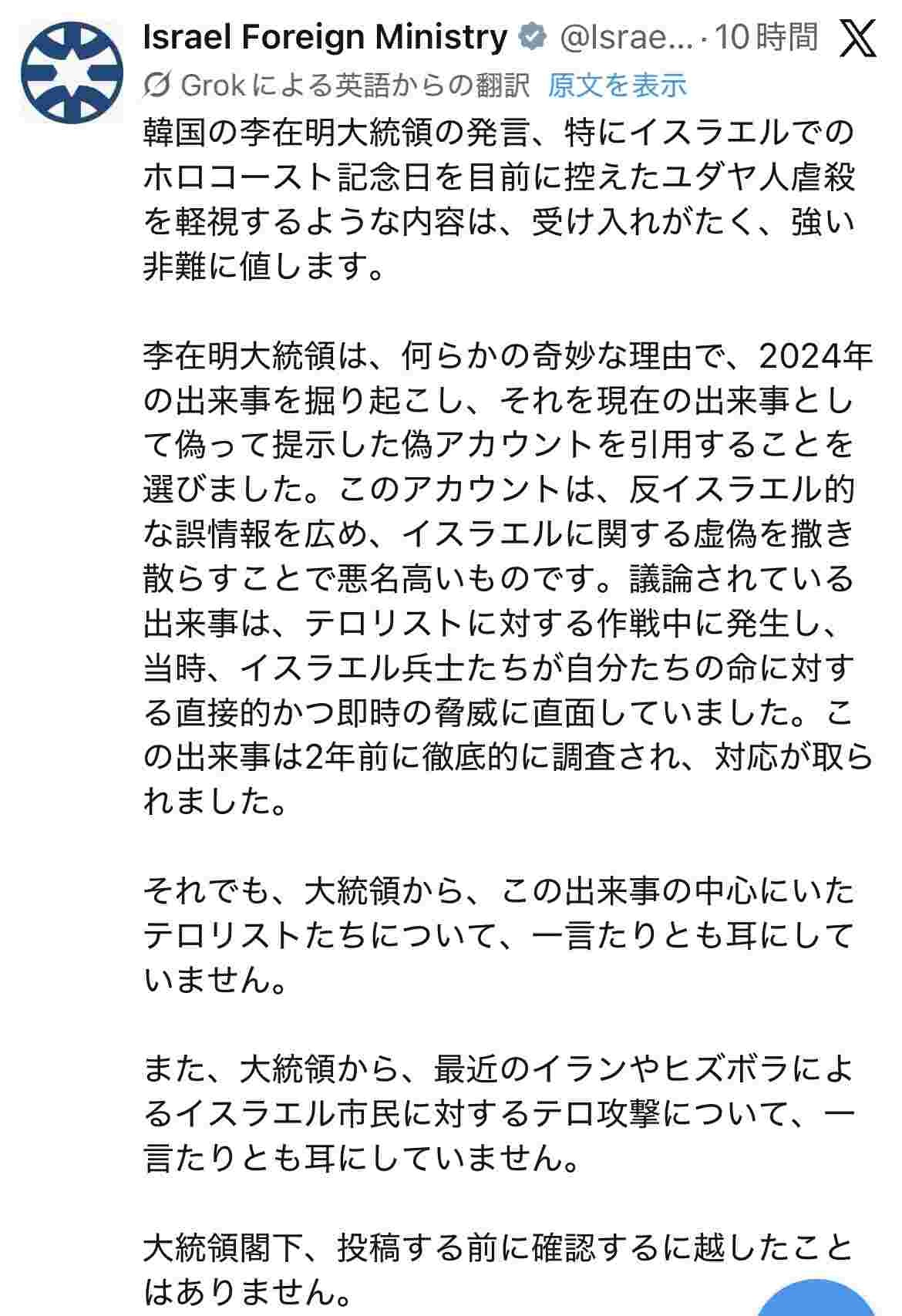 イスラエル批判の韓国大統領、イスラエル外務省にブチギレられるwww