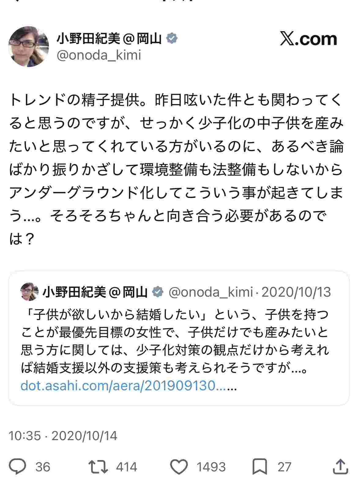 小野田紀美@岡山 (@onoda_kimi) on X@PDPT_hahahaha うーん…価値観は人それぞれですからね。私の母も顔、身長、IQ、歯と目の良さ等子供への遺伝を考えて相手を選んだと言ってましたし…。母親の好みと言われてしまうかもですが、子供の私はそれで幸せでしたよ。x.com - 2 名前:ここからは表現の自由でイカせていただきます 投稿日時:2026/04/17(金) 15:26:09.59 ID:vqIC68aM0
