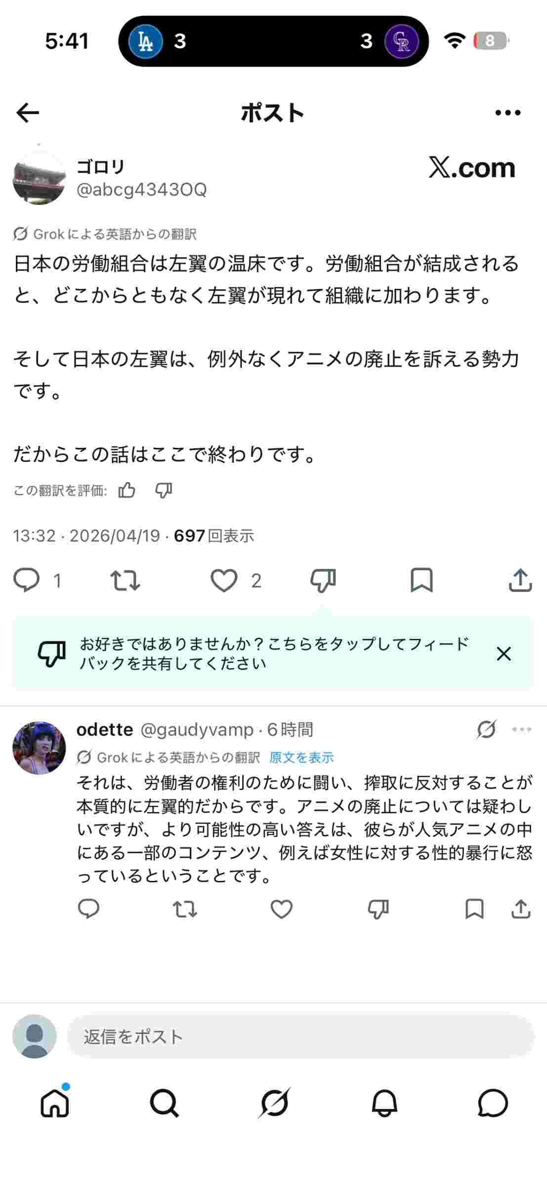 41 名前:ここからは表現の自由でイカせていただきます 投稿日時:2026/04/20(月) 06:27:36.62 ID:YzRuvvet0