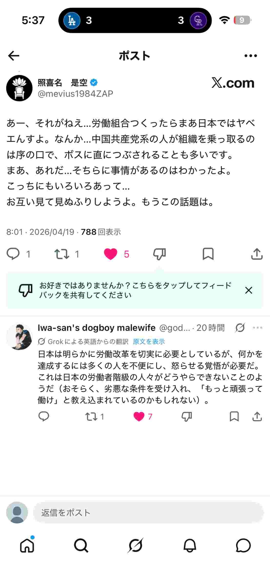 9 名前:ここからは表現の自由でイカせていただきます 投稿日時:2026/04/20(月) 06:17:46.18 ID:cX4i6M8m0