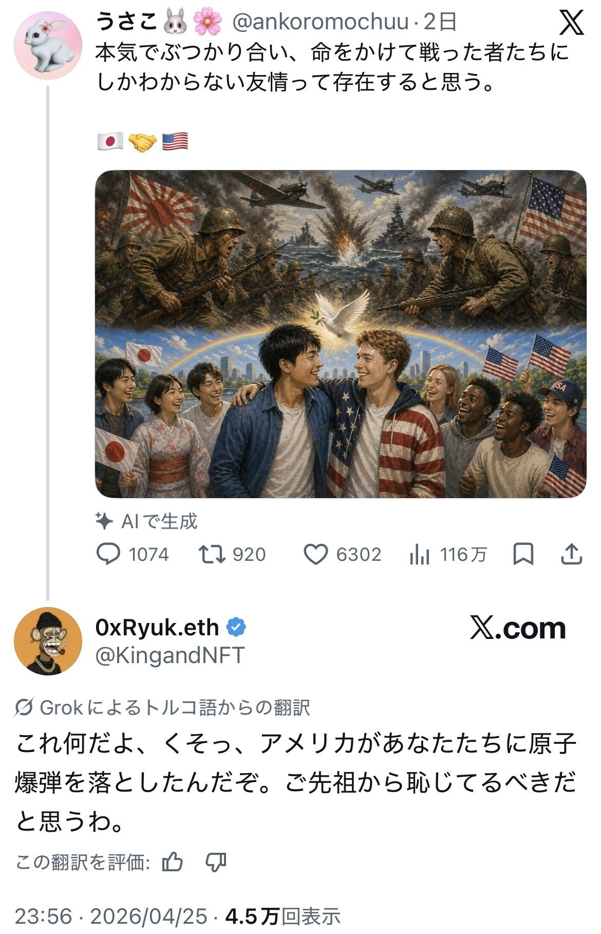 ジャップとアメップに友情があると思ってる頭お花畑すぎるだろ