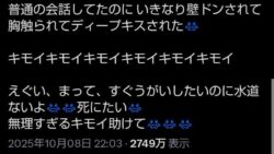 嫌儲 女性「待って、おぢにいきなり壁ドンされて胸触られてディープキスされた😭キモイキモイキモイ」