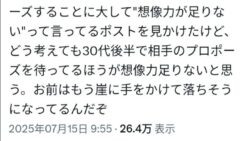 嫌儲 😯「女から男にプロポーズするとか考えれない」って言ってる30代女、ガチで危機感持った方がいい。