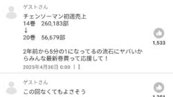 エッヂ チェンソーマン2部、ついに信者にも見捨てられコメ欄が批判だらけになるwww