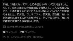 嫌儲 仁藤夢乃「筋金入りのレイシストが日本初の女性総理大臣になってしまった。とっくにこの国は恐ろしい時代に入っている」1万いいね