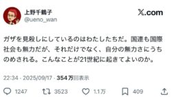 エッヂ フェミニスト上野千鶴子さん、ガザの虐殺に心を痛め日本社会を批判するも過去の自分が集まってきて後ろから刺される