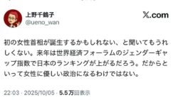 嫌儲 上野千鶴子「初の女性首相、うれしくない」 三谷議員「女性という尺度を都合よく使ってきただけじゃん。あほらし」