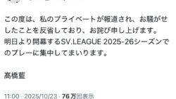 エッヂ 女優の河北彩伽、バレー髙橋藍との二股報道にお気持ち表明…