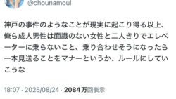 嫌儲 神戸殺人→「女性が乗ってるエレベーターに男は乗らない」。これから当たり前のマナーに。