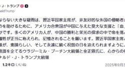 嫌儲 トランプ「習近平国家主席、米国の犠牲で成り立った勝利記念日おめでとう、陰謀を企てるプーチンやキムにも宜しく伝えてくれ