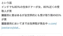 嫌儲 女性「臓器提供を受ける側の8割が男、ドナーは8割が女。女性搾取だ!」