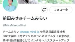 嫌儲 チームみらいの女性候補、20歳でで難民キャンプの支援活動後世界銀行の会議出て南アで勤務した後訪問看護の会社を立ち上げ