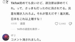 エッヂ 小泉進次郎さん、進さん化が加速。公式Tiktokの批判コメントを削除して印象操作してしまうwww