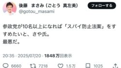嫌儲 へずまりゅう「高市さんの敵は日本の敵、社民党党首の福島みずほが戦争準備内閣と批判殺到、スパイ防止法を早めに制定するべき