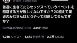 嫌儲 女「普通に生きてたらセクロスっていうイベントを回避する方が難しくないですか?」👉全国の童貞発狂