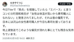 エッヂ 寿エンパイア作者「エバースとかいう漫才師が『女は体温高いから寿司職人になれない』と言っていた。とても残念な気持ち」