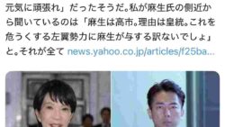 嫌儲 門田隆将先生「麻生太郎は高市支持、理由は皇統。自民党で小泉を支持するやつは左翼議員」