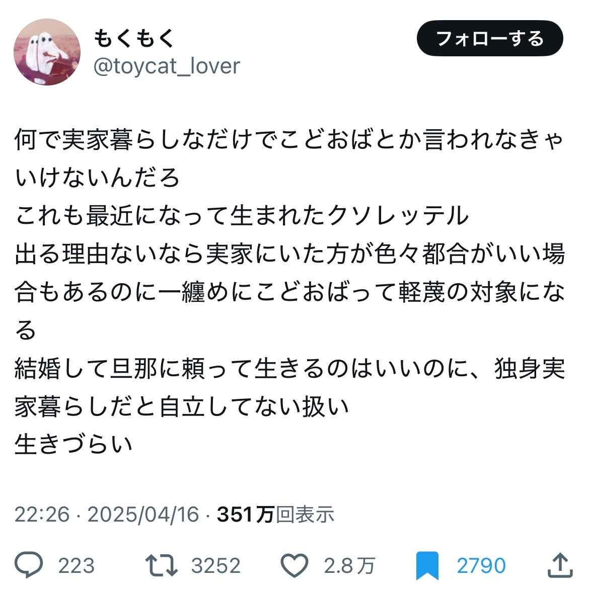 40代の無産様とかならそりゃね… - 26 名前:ここからは表現の自由でイカせていただきます 投稿日時:2025/04/18(金) 01:04:26.757 ID:gSlhHRu+0