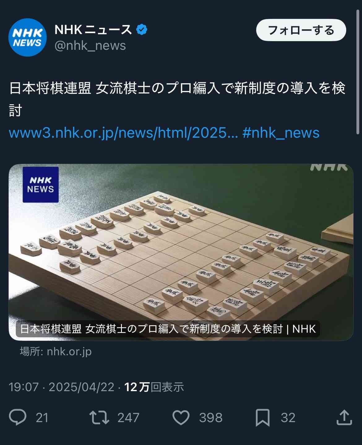 最初から女流に行っちゃうからなのか? - 38 名前:ここからは表現の自由でイカせていただきます 投稿日時:2025/04/24(木) 18:36:27.917 ID:+Xk21FEF0