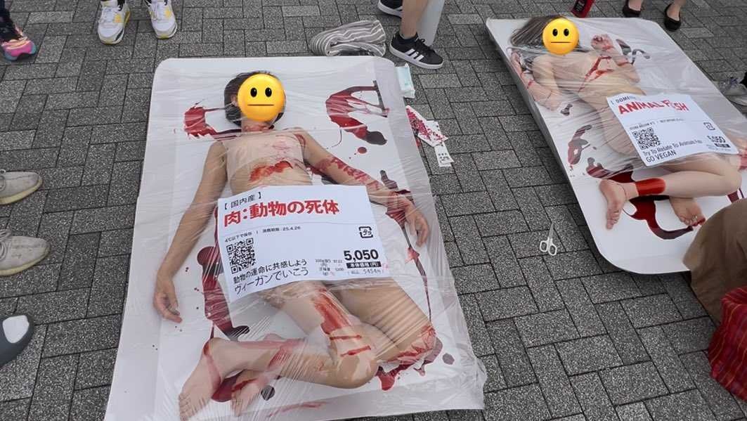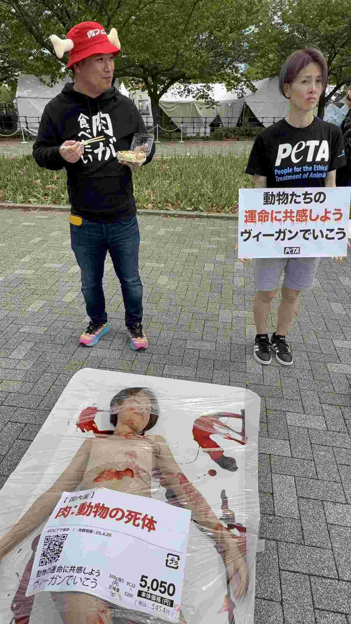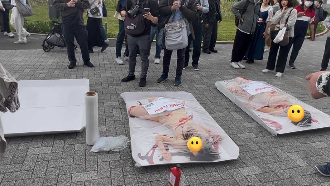 【画像】肉フェスの前で半裸の女体をパック詰めしている変な団体が登場し話題に