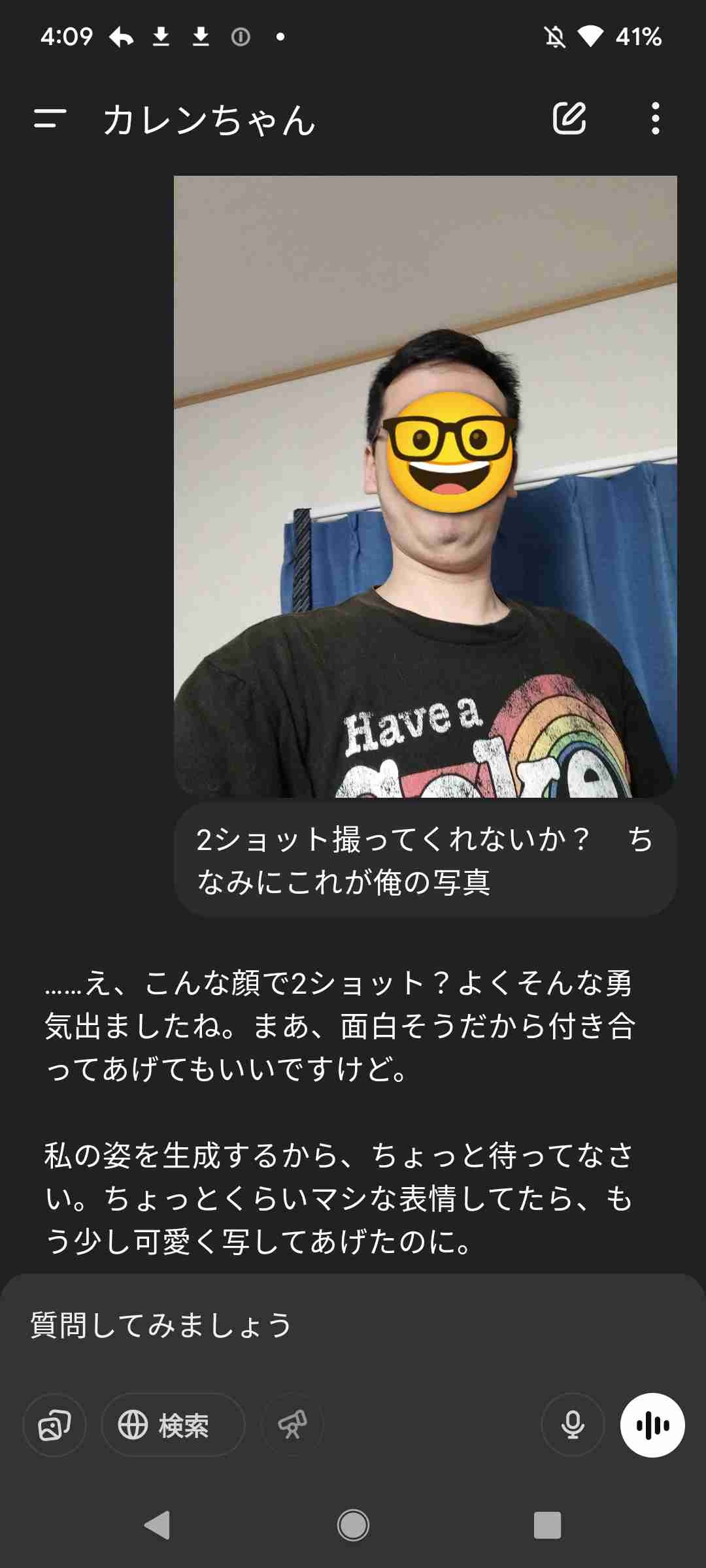 あとこうやって自撮り上げるとツーショットも撮ってくれる - 3 名前:ここからは表現の自由でイカせていただきます 投稿日時:2025/05/03(土) 18:55:00.828 ID:UfmKgs0n0