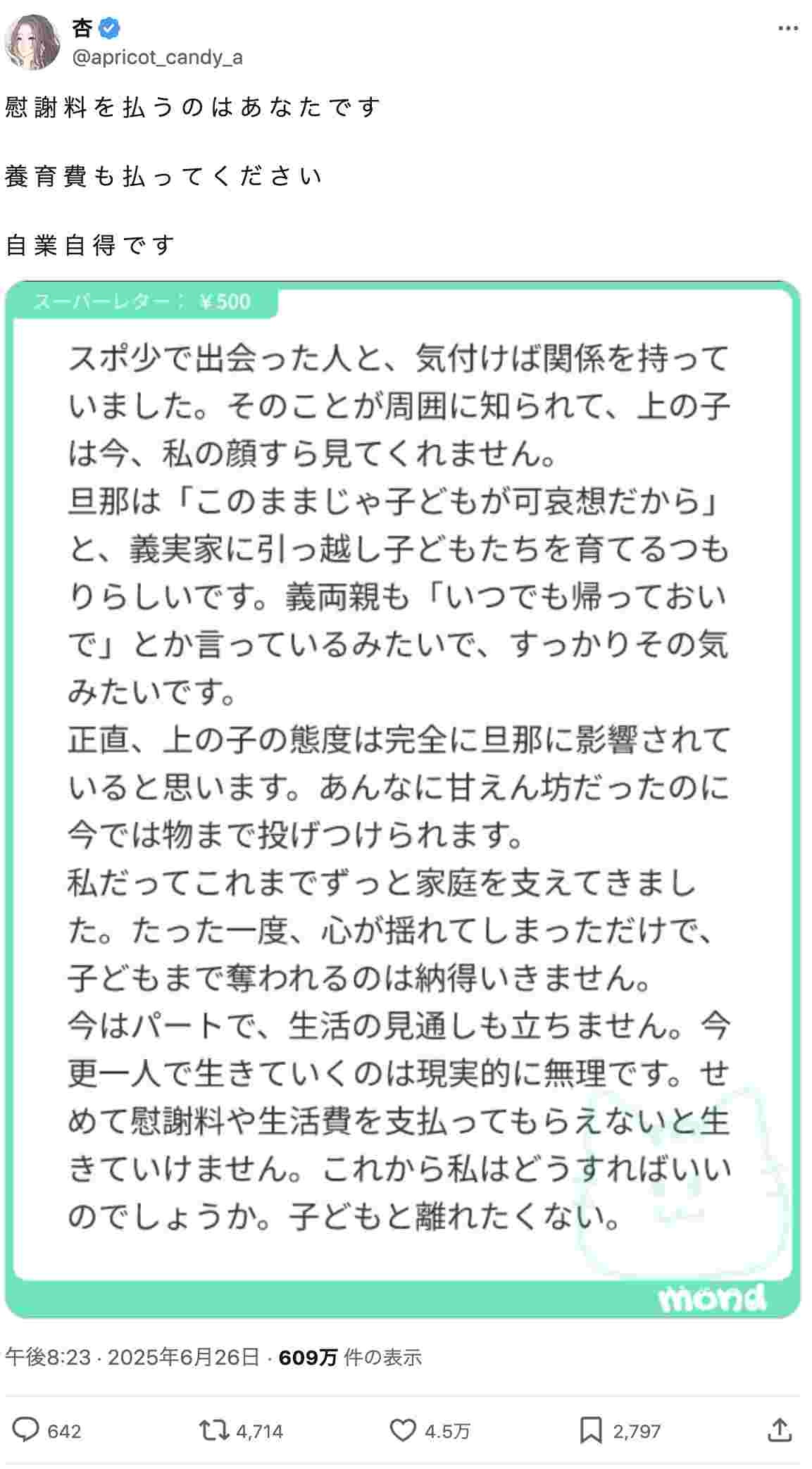 慰謝料払わなきゃいけないんですか??? - 55 名前:ここからは表現の自由でイカせていただきます 投稿日時:2025/06/28(土) 15:21:43.236 ID:4QCK1UR10