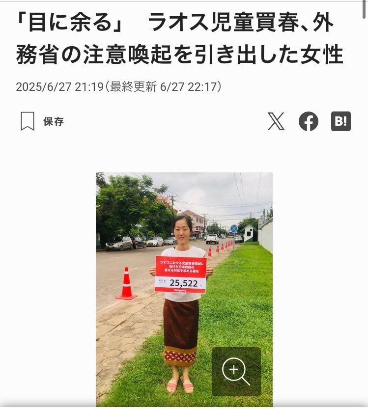 「目に余る」 ラオス児童買春、外務省の注意喚起を引き出した女性 | 毎日新聞ラオスでの日本人男性による児童買春が疑われるような投稿が交流サイト(SNS)で相次いでいるとして、現地在住の日本人女性が6月初旬、撲滅を求める署名を提出した。女性は「あまりにも目に余る状況で、見て見ぬふりをできなかった」と語る。在ラオス日本大使館は女性の訴えを受けて、異例の早さで注意喚起文を出したmainichi.jpラオスでの日本人男性による児童買春が疑われるような投稿がSNSで相次いでいるとして、現地在住の日本人女性が6月初旬、撲滅を求める署名を提出した。