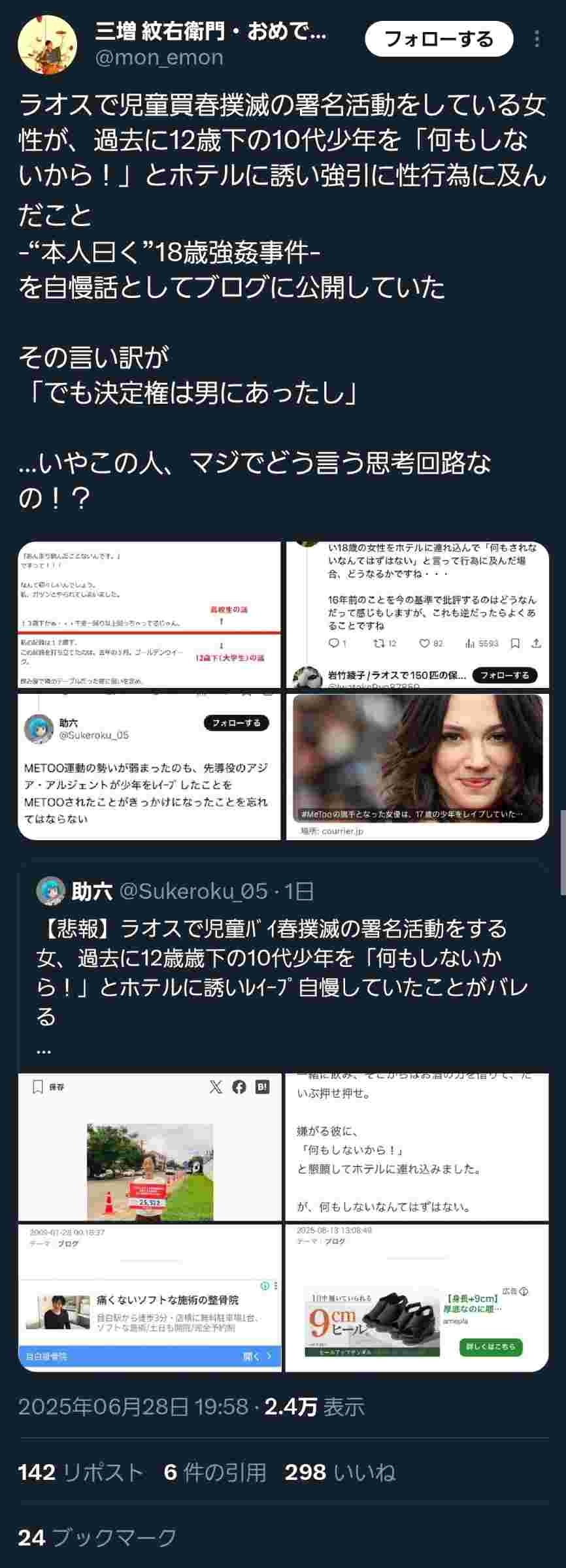 ラオスのロリ買春を告発したまんさん、自身も10代の現地人に強引に性行為してた事が判明してしまう