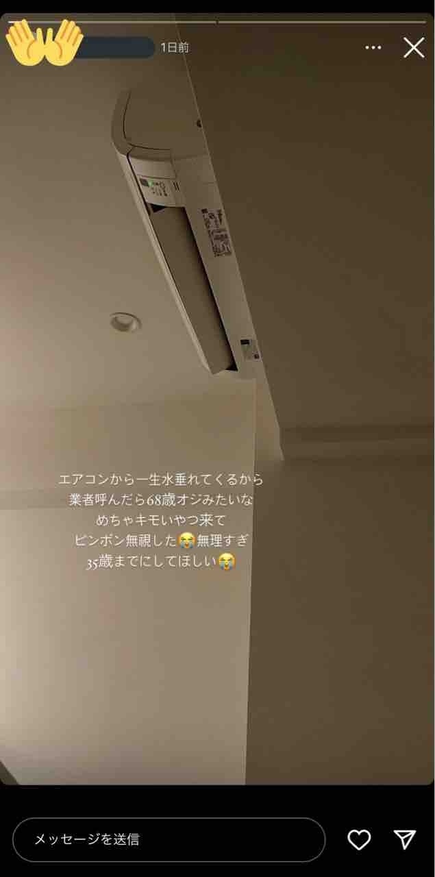 - 一生居留守してエアコンから一生垂れる水飲んで暑さを凌いでたらいいよ