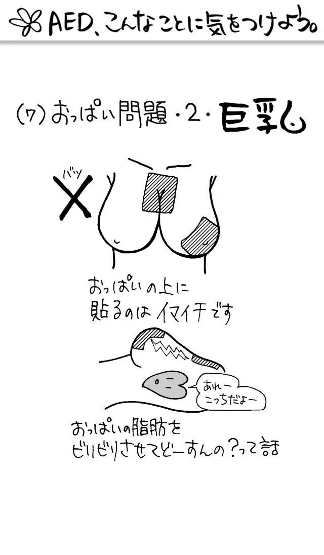 【画像】おまんさん「AED使うときはココに身をつけてね☆」