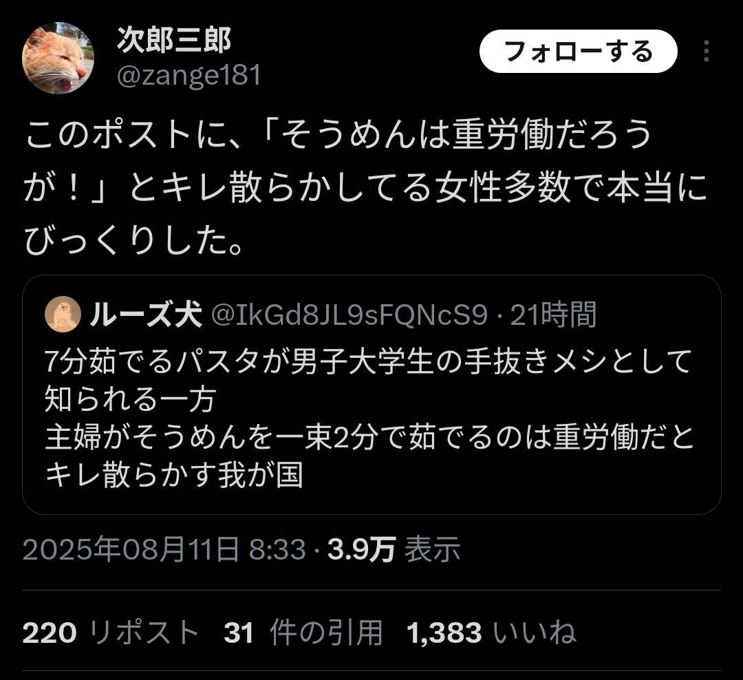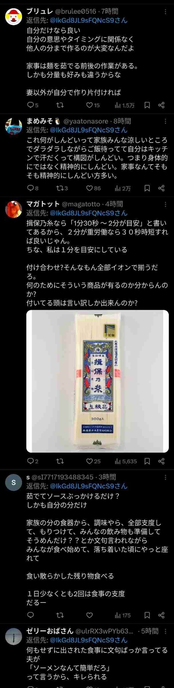 - 夫がそうめん作ったら作ったでそうめん作ったくらいで家事した面すんなクソ旦那!!って思ってるくせにな