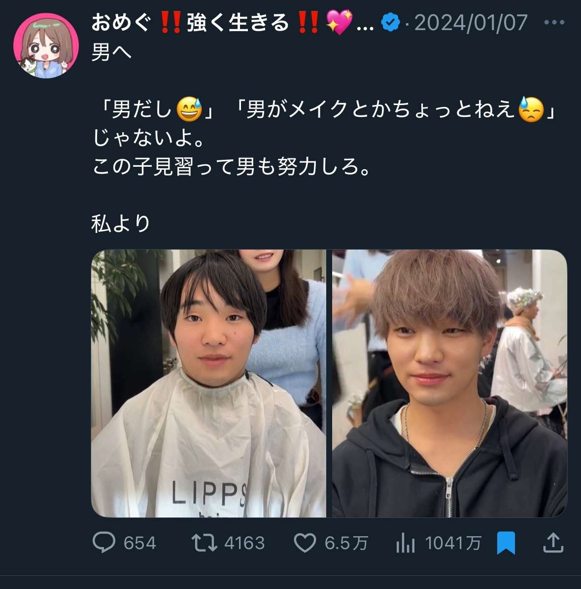 女の子「男もメイクしろ! この子見習って努力しろ!!」 6.5万いーね