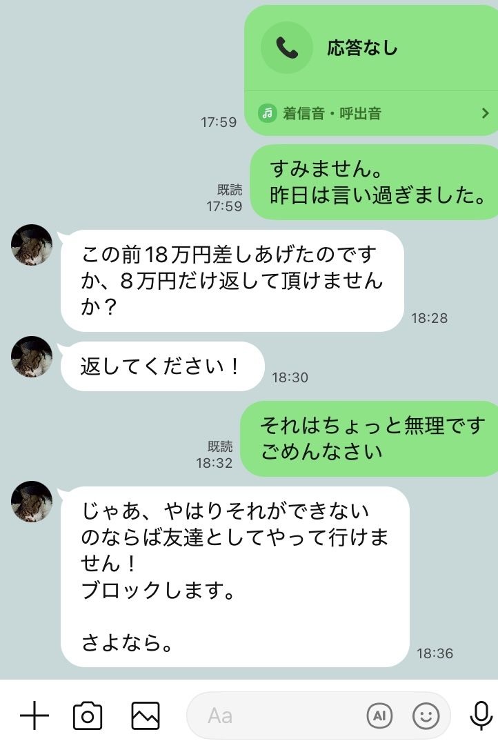返してって向こうは意思表示してるから贈与にはならないと思うよ