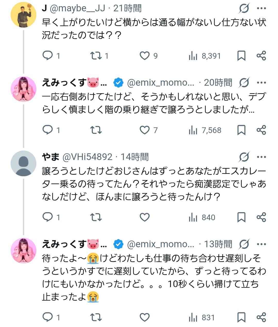 女さん(体重100㎏超え)「エスカレーター乗ったら後ろからおじが詰めてきて怖くて大声で叫んだ!」←2.9万いいね!